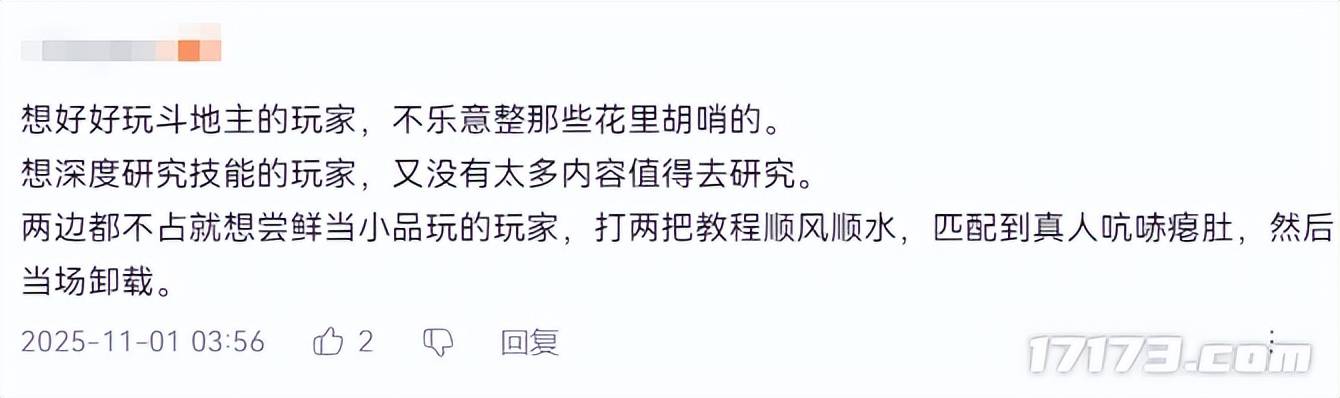 此外,斗地主本身策略深度有限,叠加技能后并未形成“1+12”的化学反应,反而因规则叠加显得混乱,整体体验不如传统棋牌流畅。